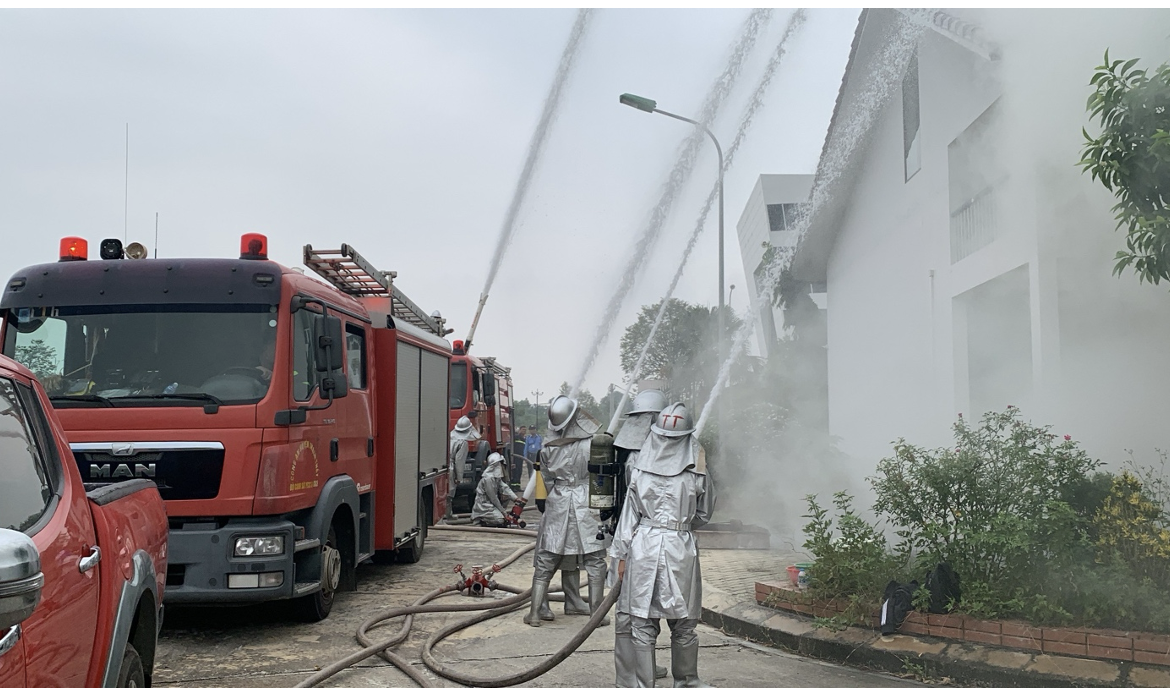 Viện Ứng dụng công nghệ tổ chức thực tập phương án chữa cháy, cứu nạn, cứu hộ đối với trụ sở tại Khu Công nghệ cao Hòa Lạc.