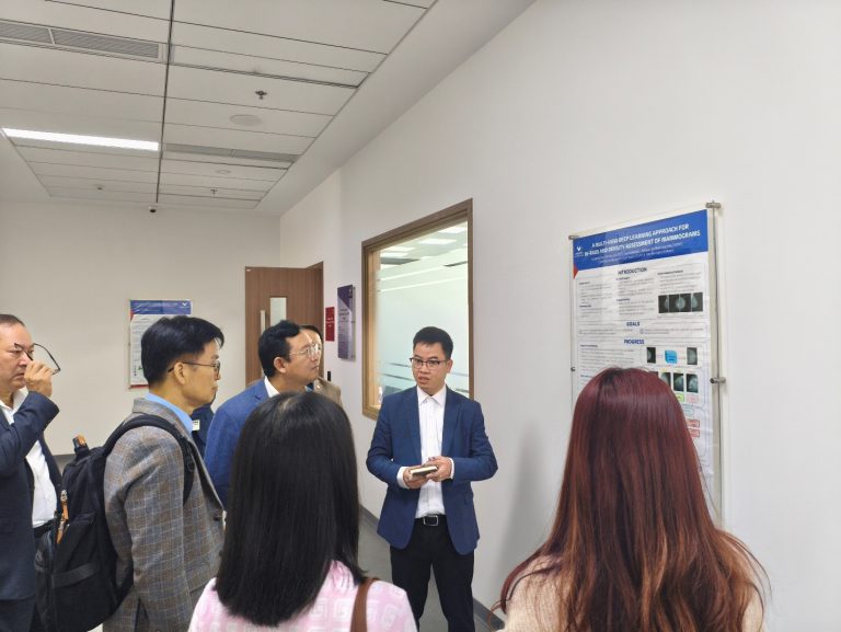 At the meeting, Dr. Pham Huy Hieu shared VinUni’s strategic vision of becoming a research-oriented university based on the 3P model (Prosperity – Health – Environment). The core objective is to foster prosperity through AI and robotics, enhance community healthcare, and promote environmental sustainability. The delegation directly visited VinUni’s laboratories and recognized several remarkable research achievements, including: