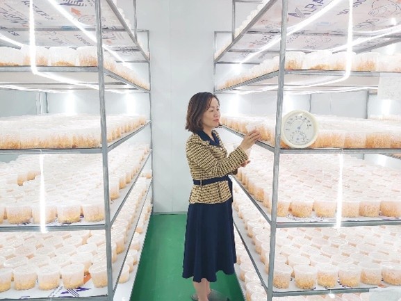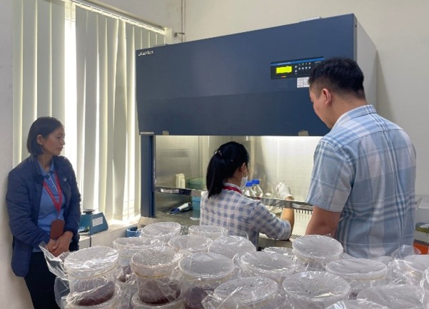 Cán bộ Trung tâm chuyển giao công nghệ nuôi trồng nấm Đông trùng hạ thảo tại Công ty CP thương mại và thiết bị Hoàng Linh