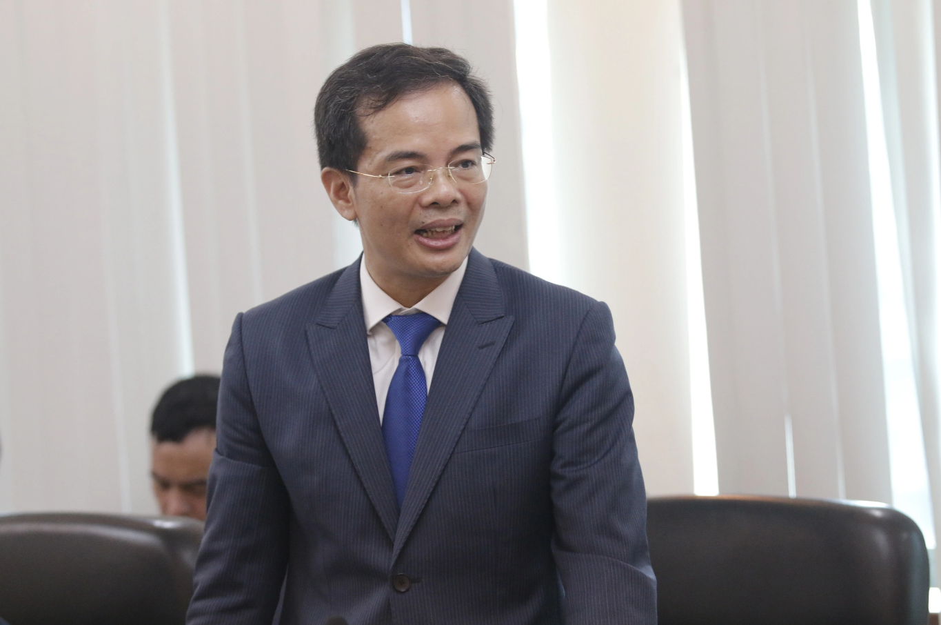 Ông Hoàng Ngọc Nhân, Viện trưởng Ứng dụng Công nghệ, trong buổi làm việc với Bộ trưởng Nguyễn Mạnh Hùng, ngày 3/7. Ảnh: Thanh Hằng