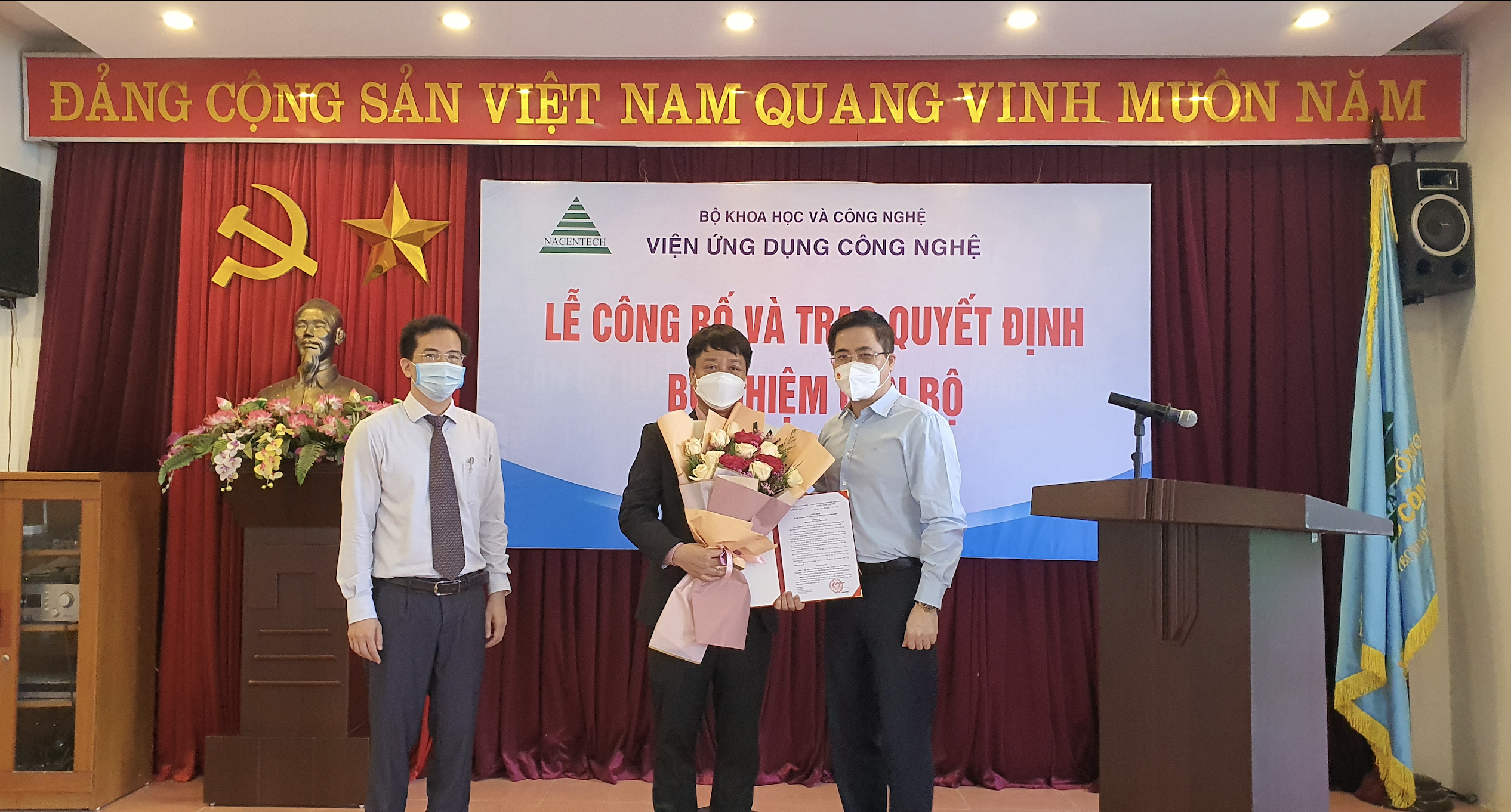 Tại buổi Lễ, đồng chí Phạm Thị Vân Anh đã công bố Quyết định số 1965/QĐ-BKHCN ngày 26/7/2021 của Bộ trưởng Bộ KH&CN về việc bổ nhiệm có thời hạn ông Trần Hùng Thuận, Giám đốc Trung tâm Công nghệ Vật liệu, Viện ƯDCN giữ chức vụ Phó Viện trưởng Viện ƯDCN; Quyết định số 2059/QĐ-BKHCN ngày 06/8/2021 của Bộ trưởng Bộ KH&CN về việc tiếp nhận, bổ nhiệm có thời hạn ông Hoàng Ngọc Nhân, Phó Viện trưởng Viện Nghiên cứu Điện tử, Tin học, Tự động hóa, Bộ Công thương giữ chức vụ Phó Viện trưởng Viện ƯDCN.